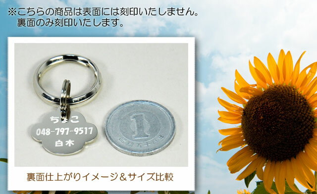 ・裏面にペットの名前・ご連絡先・オーナー名などの文字を3行まで刻印可能です。