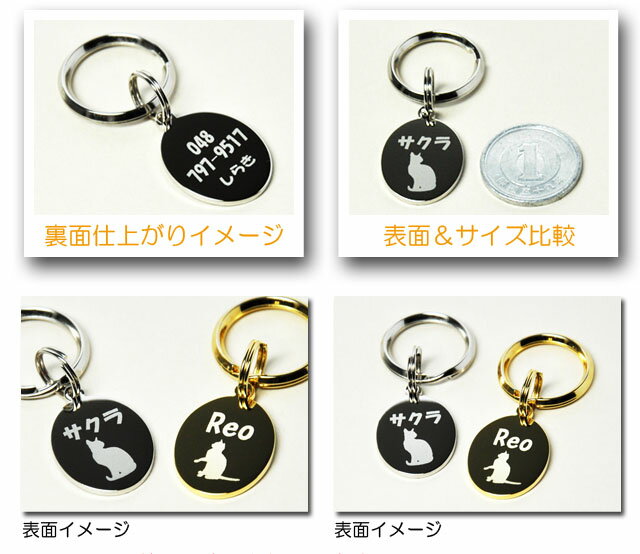 世界でひとつだけの贈り物名入れ 刻印 オリジナル 迷子札愛猫にぴったりなオーバルタイプのメタル迷子札!・表面にはペットの名前・シルエットを刻印します。