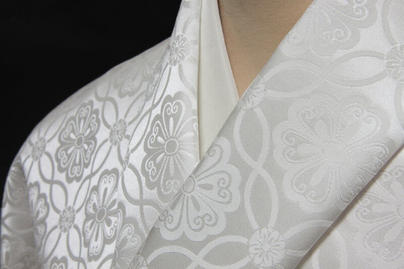 山口美術織物 唐織 袋帯 仕立て代込み 正絹 西陣織 礼装 礼装用 フォーマル 新品 購入 販売 古典柄 結婚式 訪問着 黒留袖 白 鳥襷文 仕立て付き 大衆演劇 絹 fo-436
