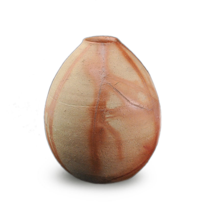 ○備前焼火襷文瓶○藤原雄(人間国宝)-木製共箱付-口に極小ホツ有り【陶芸家】【美術品】【中古】【送料無料】
